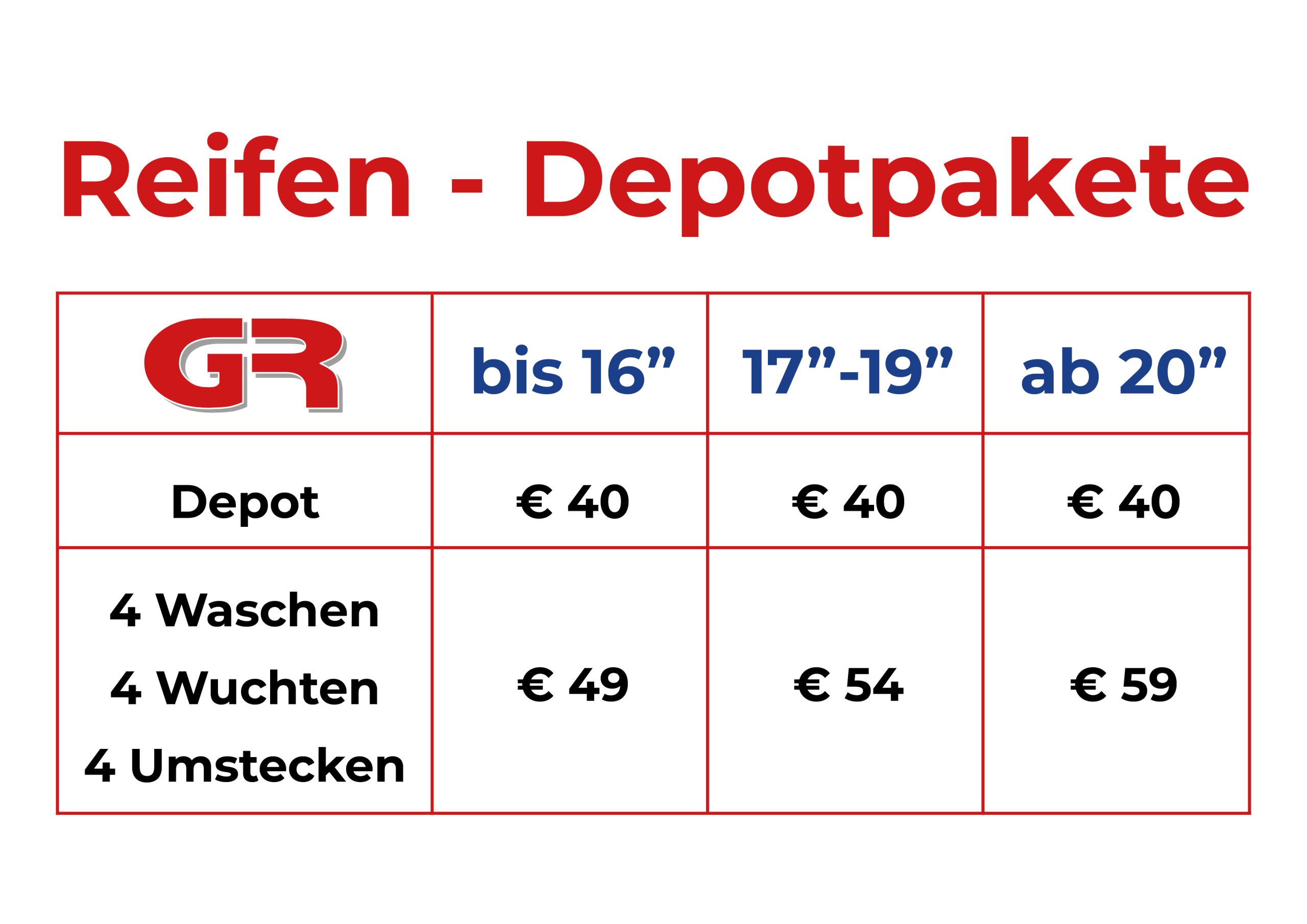 Reifenwechsel inkl. wuchten ab €49- Reifeneinlagerung nur €40- für eine Saison.
